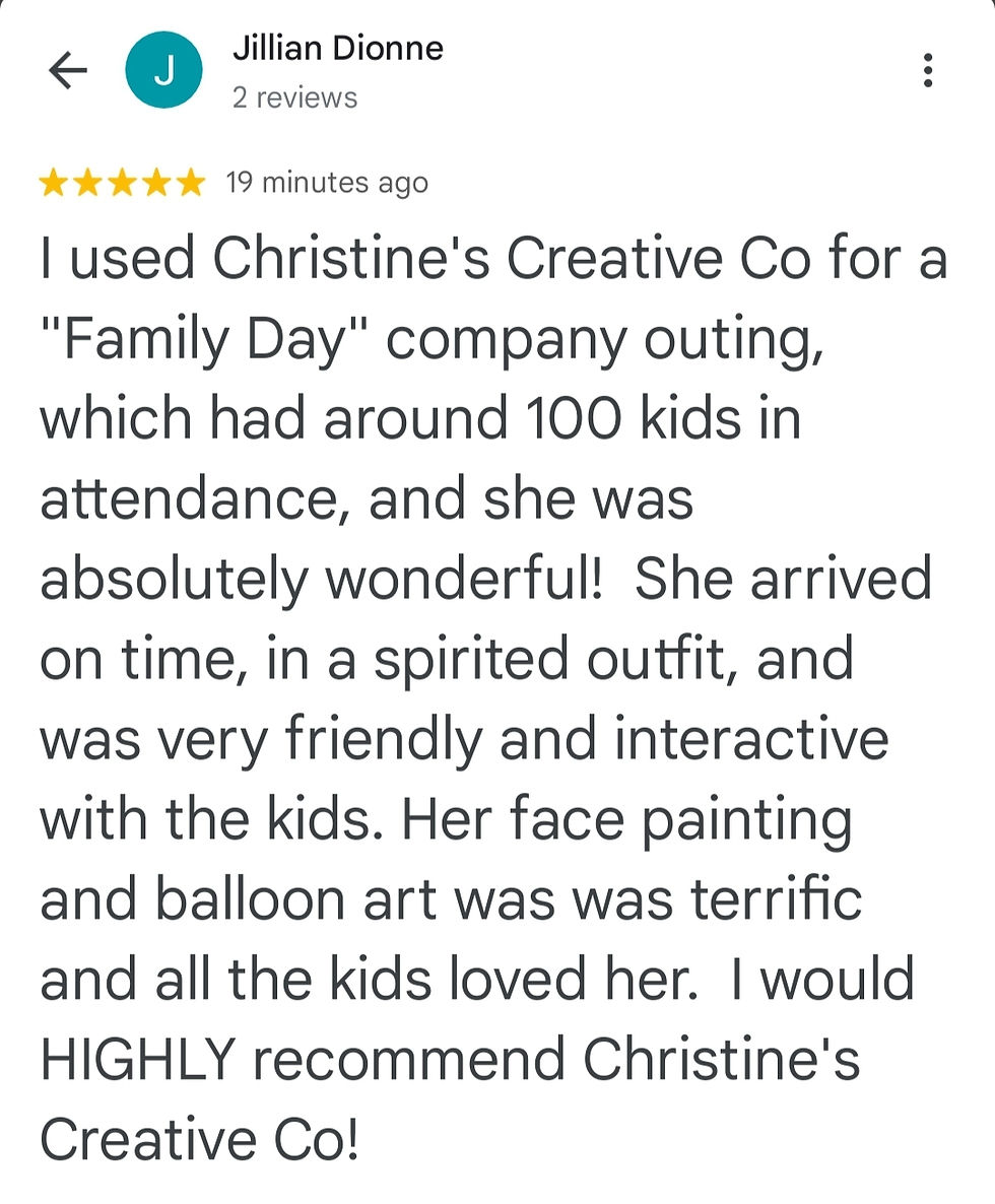 Ready to make your Bring Your Child to Work Day unforgettable? Christine's Creative Co. offers professional balloon twisting, caricatures, face painting, glitter tattoos, and custom event décor tailored to your workplace.